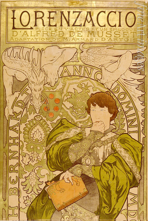 Mucha Alfons Marie - Plakat für Theaterstück Lorenzaccio von A. de Musset im Theatre de la Renaissanse (Oberteil)