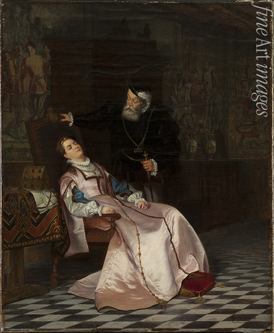 Titel:Gustav Vasa findet seine Gemahlin Katharina Stenbock schlafend vor und hört sie sagen: König Gösta, ich liebe Dich...