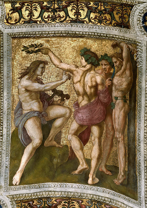 Apollon und Marsyas. (Deckenfresko in Stanza della Segnatura)