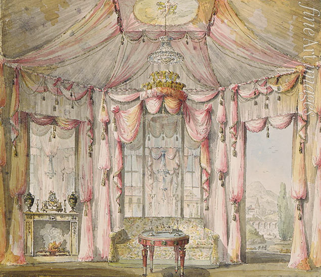 Entwurf der Innendekoration des Boudoirs im Haus des Grafen Besborodko in Moskau