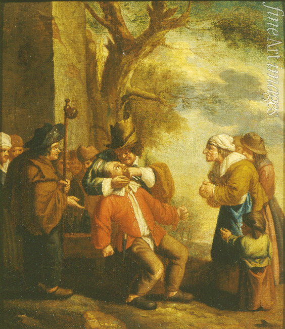 Barock, Arzt, Medizin, Krankheit, Krankenbesuch, Behandlung, Geschichte der Medizin, Schwindler, Dentist, Zahnarzt, Fünf Sinne, Fälscher, Scharlatan, Gaukelei, Betrügerei, Betrüger, Patient, Sinne, Schmerz, Schmerzempfindung, Quacksalber, Zahnbehandlung, Zahnzieher, Kurpfuscher