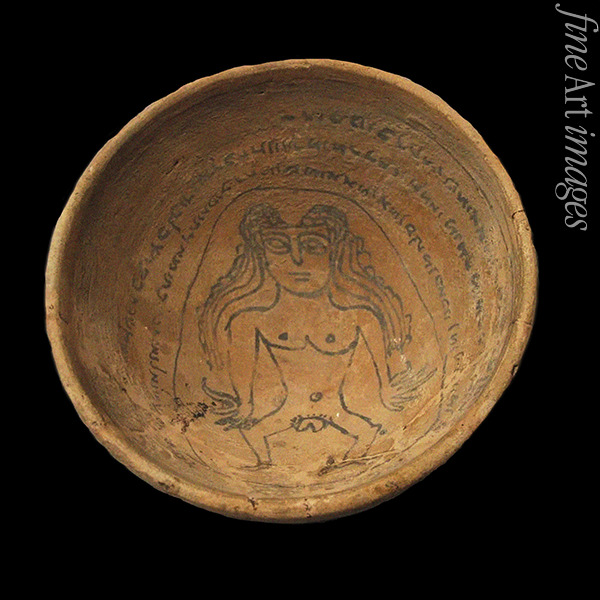 Zauberschale mit einem Beschwörungstext in Judeo-Aramäisch und einem Bild des Dämons Lilith