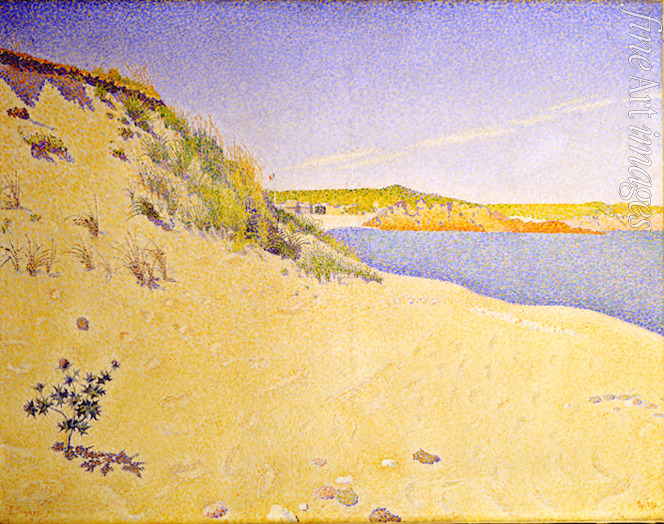 Dekorativ, Frankreich, Natur, Poesie, Sonnenlicht, Licht, Farbigkeit, Meer, Meereslandschaft, Südfrankreich, Küste, Meeresküste, Bucht, Strand, Pointillismus, Neoimpressionismus, Divisionismus, Sand, Strand bei Saint-Briac, Sandufer des Meeres, Impressionismus, Impressionisten, Saint-Briac