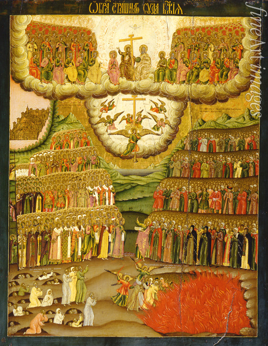 Ikone, Ikonenmalerei, Bibel, Altes Testament, Neues Testament, Justiz, Christentum, Gott, Schuld, Gutes und Böses, Geist, Teufel, Sünde, Hölle, Orthodoxe Kirche, Russische Kirche, Jüngstes Gericht, Jüngster Tag, Letztes Gericht, Weltgericht, Himmelreich, Reich Gottes, Apokalypse, Gerechtigkeit, Das Jüngste Gericht, Justitia, Iustitia