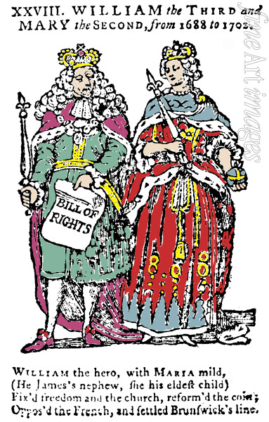 König William III. von England mit der Bill of Rights in der Hand, und Königin Maria II.