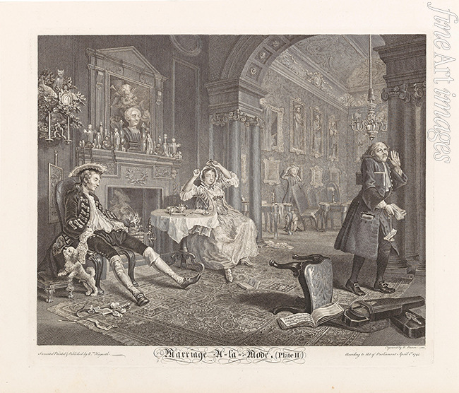 Satire, Hochzeit, Braut, Brautpaar, Trauung, Geld, Menschlichkeit, Verschulden, Gier, Fülle, Bräutigam, Reichtum, Verlobung, Heirat, Eheschließung, Hochzeitsbrauch, Anwalt, Rechtsanwalt, Ehevertrag, Notar, Verlöbnis, Englische Malerei, Marriage a la Mode, Heirat nach der Mode, Wohlstand, Vermögensstand, Vermögen, Matrimonium, Hochzeitspaar