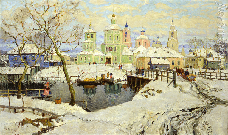 Schnee, Sonne, Jahreszeiten, Stadtbild, Lichtwirkung, Frühling, Russland, Kirche, Frühlingslandschaft, Vorfrühling, Städtchen, Ruhe, Friede, Tauwetter, Vorfreude, Torschok