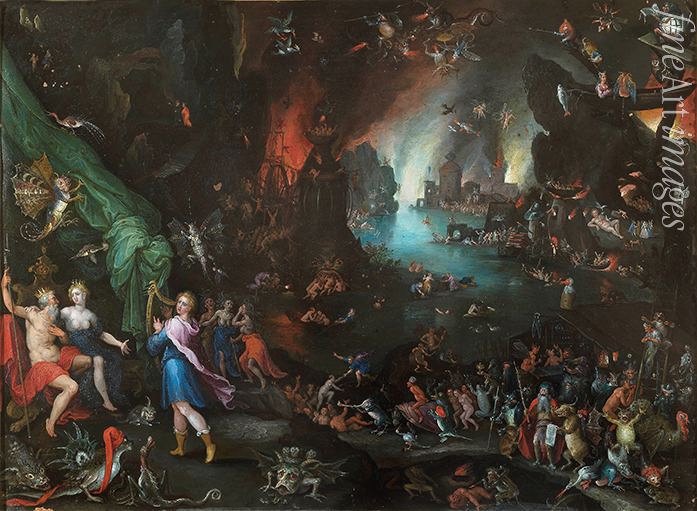 Orpheus spielt vor Pluto und Persephone in der Unterwelt