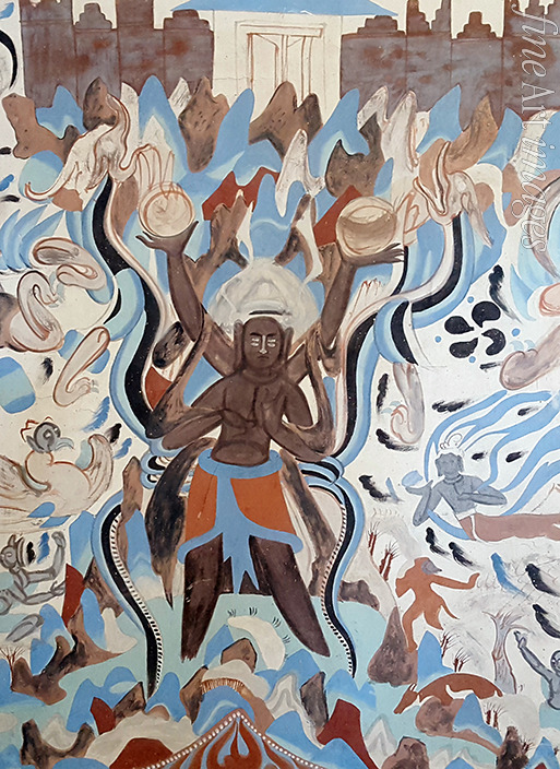 Asura. Wandmalerei aus der Höhle Nr. 249. Mogao-Grotten