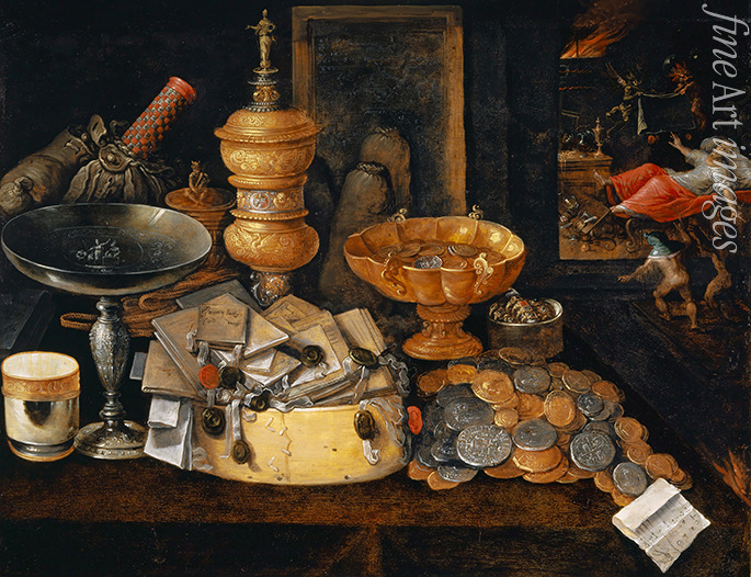 Stillleben mit Reichtümern und dem Tod des Geizigen