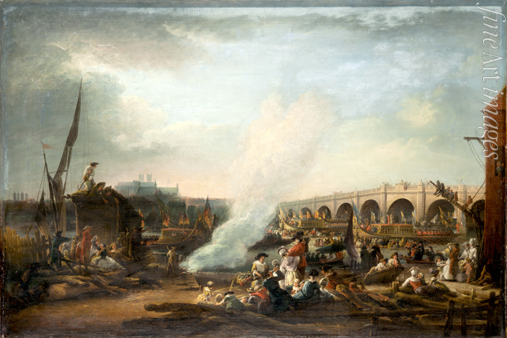 Westminster Bridge und die Themse-Prozession von König Christian VII. von Dänemark 1768
