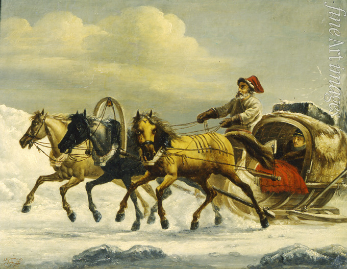 Winter, Schnee, Pferd, Winterszene, Kutsche, Ross, Russischer Winter, Schlitten, Kutschenfahrt, Kutscher, Pferdeschlitten, Schlittenfahrt, Troika, Dreigespann, Jamschtschik, Jamschik, Pferdewagen, Kibitka