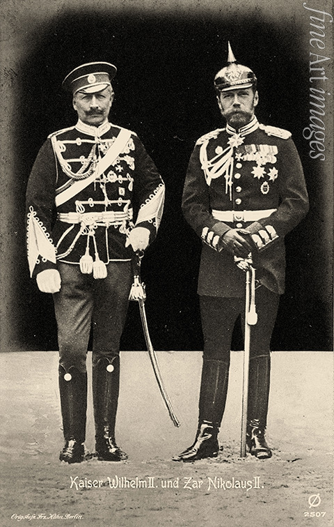 Fotoatelier Franz Kühn Berlin - Kaiser Wilhelm II. (links) in russischer Uniform und Zar Nikolaus II. (rechts) in preußischer Uniform in Björkö