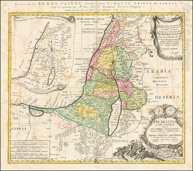 Karte des Heiligen Landes, aufgeteilt auf die zwölf Stämme Israels