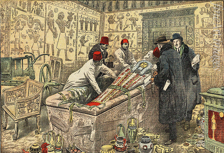 Howard Carter und Lord Carnarvon am Sarkophag des Tutanchamun