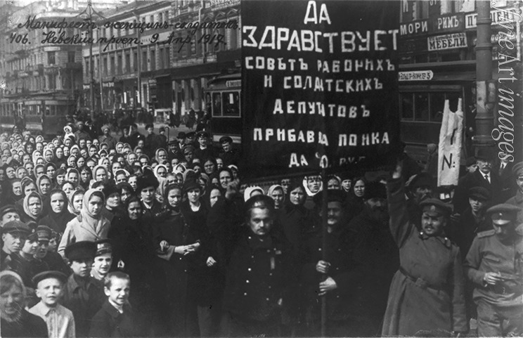 Es lebe der Rat der Arbeiter- und Soldatendeputierten! Russische Matrosen- und Frauendemonstration in Petrograd am 9. April 1917