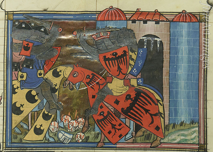 Ritter, Kreuzzug, Kreuzfahrer, Kreuzritter, Handschrift, Mittelalter, Buchmalerei, Manuskript, Bilderhandschrift, Erster Kreuzzug, Ritterorden, Kreuzzüge, Miniatur, Schlacht von Doryläum