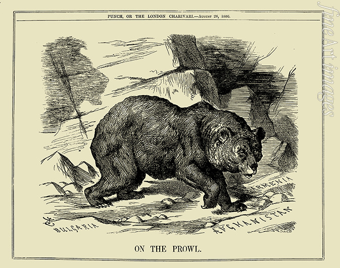 Russischer Bär auf der Pirsch in Bulgarien, Armenien und Afghanistan (Punch magazine, 1886)
