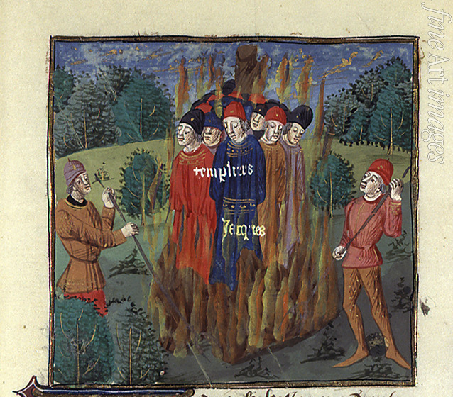 Unbekannter Künstler - Hinrichtung der Templer. Aus «Des Cas des nobles hommes et femmes» von Boccaccio