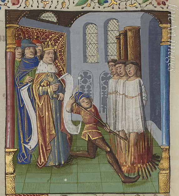 Unbekannter Künstler - Hinrichtung der Templer. Aus «Des Cas des nobles hommes et femmes» von Boccaccio