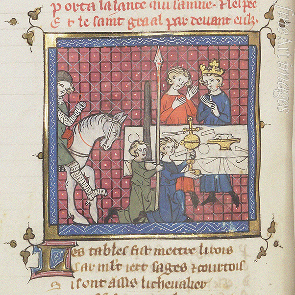 Ritter, Kreuzzug, Kreuzfahrer, Kreuzritter, Handschrift, Mittelalter, Buchmalerei, Ritter der Tafelrunde, König Arthur, Manuskript, Bilderhandschrift, Ritterorden, Heiliger Gral, König Artus, Artus, Artussage, Kreuzzüge, Miniatur, Livro do Ameiro-Mor, Saint Graal, Graal, Gral