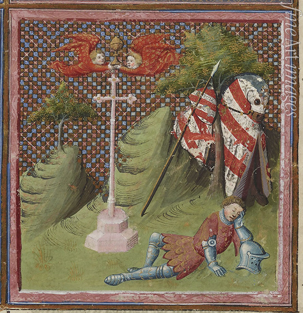 Ritter, Kreuzzug, Kreuzfahrer, Kreuzritter, Handschrift, Mittelalter, Buchmalerei, Ritter der Tafelrunde, König Arthur, Manuskript, Bilderhandschrift, Ritterorden, Heiliger Gral, König Artus, Artus, Artussage, Kreuzzüge, Miniatur, Livro do Ameiro-Mor, Saint Graal, Graal, Gral