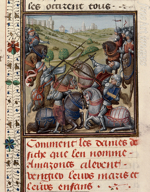 Amazonen im Kampf. Aus Histoire ancienne jusqu'à César von Wauchier de Denain