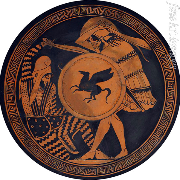Griechischer Hoplit kämpft gegen einen Perser (rotfigurige Trinkschale (Kylix)