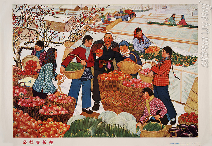 Frau, Landwirtschaft, Propaganda, Plakat, Agitation, China, Politisches Plakat, Mao Zedong, Mao, Mao Tse-tung, Kulturrevolution, Vorsitzender Mao, Volksrepublik China, Maoismus, Großer Sprung nach vorn, Mao Tsetung, Volkskommune, Chinesische Frau