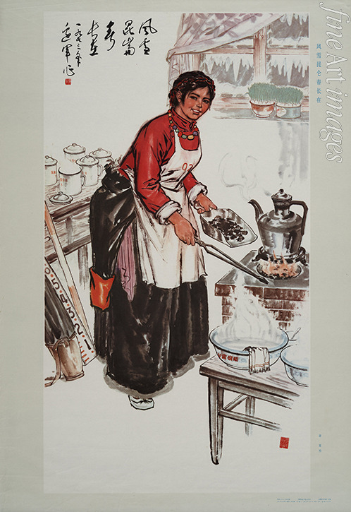 Frau, Landwirtschaft, Tee, Gesundheit, Propaganda, Plakat, Agitation, China, Politisches Plakat, Gastronomie, Mao Zedong, Mao, Mao Tse-tung, Kulturrevolution, Verpflegung, Gemeinschaftsverpflegung, Vorsitzender Mao, Volksrepublik China, Maoismus, Großer Sprung nach vorn, Mao Tsetung, Volkskommune, Chinesische Frau
