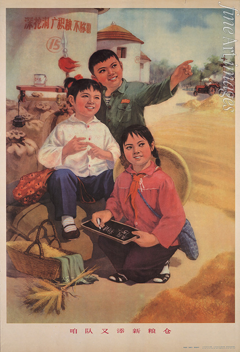 Mädchen, Landwirtschaft, Kind, Erziehung, Propaganda, Schule, Plakat, Agitation, China, Politisches Plakat, Mao Zedong, Mao, Mao Tse-tung, Studium, Bildung, Schulen, Kulturrevolution, Vorsitzender Mao, Volksrepublik China, Maoismus, Großer Sprung nach vorn, Mao Tsetung, Studieren, Volkskommune
