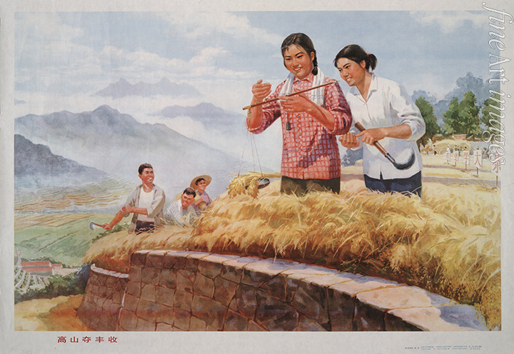 Frau, Landwirtschaft, Propaganda, Plakat, Agitation, China, Politisches Plakat, Mao Zedong, Mao, Mao Tse-tung, Kulturrevolution, Vorsitzender Mao, Volksrepublik China, Maoismus, Mao Tsetung, Volkskommune, Chinesische Frau, Kommunistischer Jugendverband Chinas