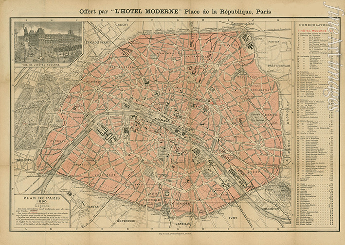 Plan de Paris, 1890. Offert par l'Hôtel Moderne, Place de la République, Paris