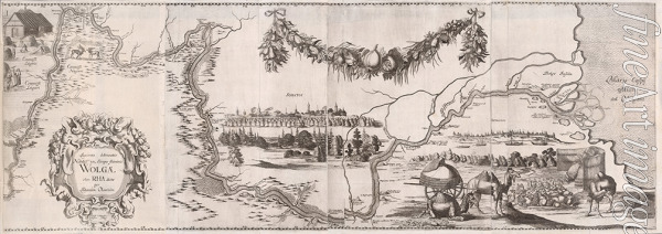 Bildkarte der Wolga (Illustration aus Moskowitische und persische Reise von Adam Olearius)