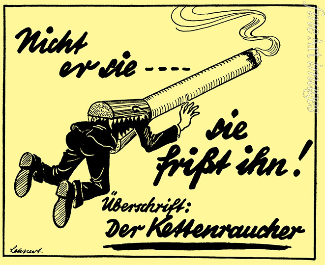 Nicht er sie, sie frißt ihn! Überschrift: Der Kettenraucher (Aus Reine Luft, 1941)