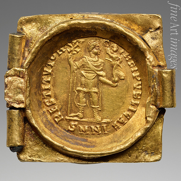 Glied aus einem Münzgürtel: Kaiser mit Vexillum und krönendem Sieg