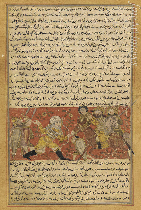 Der sassanidische General Wahrez tötet den äthiopischen aksumitischen König Masruq. Aus Tarikhnama von Bal'ami