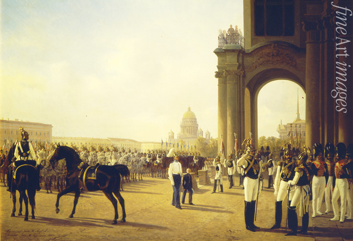 Russische Armee, Petersburg, Deutsche Malerei, Sankt Petersburg, Russische Truppen, Kavallerieregiment, Regiment, Parade, Palastplatz, Kürassiere, Chevaliergarde, Garde-Kürassierregiment