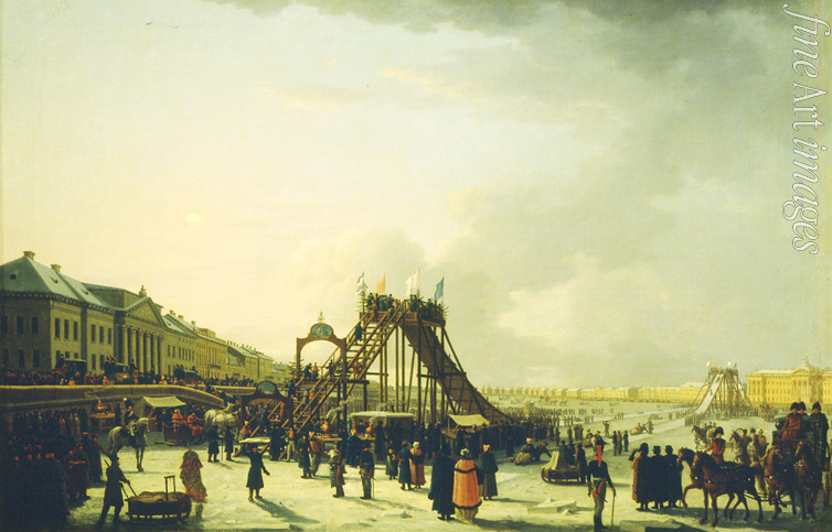 Winter, Volksfest, Wintersport, Russischer Winter, Petersburg, Newa, Sankt Petersburg, Schlittenfahrt, Sportart, Achterbahn, Rodelbahn, Montagnes Russes, Russische Berge, Rodelschlitten, Sportarten, Saison, Winterzeit, Schlitteln, Rutsche, Rutschbahn