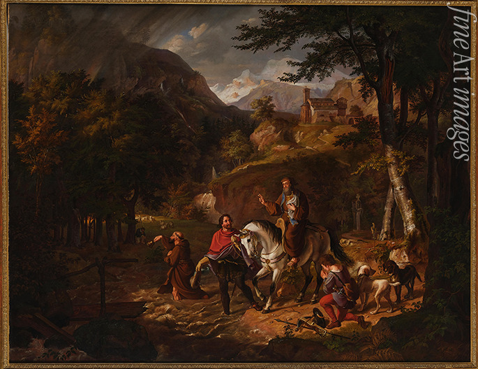 Die Habsburger Legende: Rudolf Graf Habsburg hilft einem Priester mit der Monstranz über einen Wildbach
