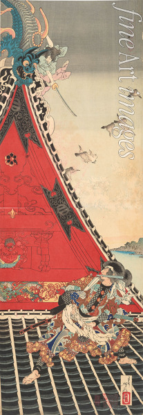 Zwei mutige Männer (Inuzuka Shino und Inukai Genpachi) beim Kampf auf dem Dach des Horyukaku