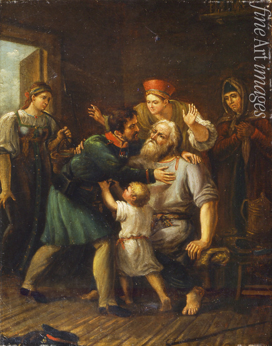 Familie, Soldaten, Krieger, Kriegsgreuel, Kriegsopfer, Kriegsleiden, Leiden, Heim, Militärdienst, Russische Armee, Soldat, Rückkehr, Heimkehr, Sarafan, Kokoschnik, Russische Kleidung, Kopfbedeckung