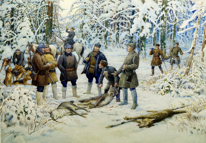 Winter, Jagd, Jäger, Jagdhunde, Hunde, Wolf, Wolfsjagd, Wölfe, Winterjagd