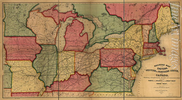 Eisenbahnkarte der östlichen, westlichen und nördlichen Bundesstaaten sowie Kanadas