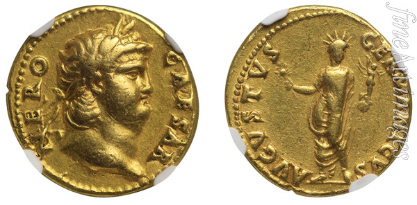 Gold, Feldherr, Münzen, Römische Antike, Römischer Kaiser, Nero, Römischer Staatsmann, Nero Claudius Caesar Augustus Germanicus, Münze, Nero Germanicus, Koloss des Nero, Colossus Neronis, Aureus