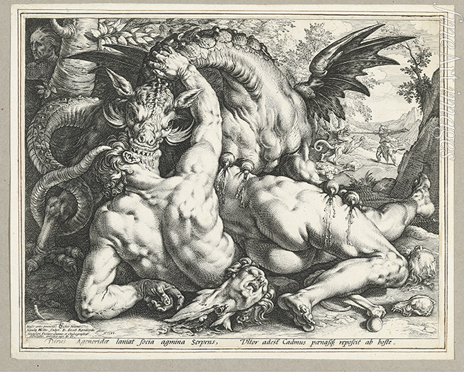 Zwei Gefährten des Kadmos, von dem Drachen getötet. (Nach Cornelis Cornelisz van Haarlem)