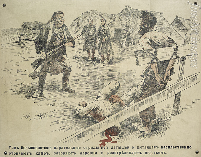 Wie die bolschewistischen Kommandos aus Letten und Chinesen Brot beschlagnahmen, Dörfer zerstören und Bauern erschießen
