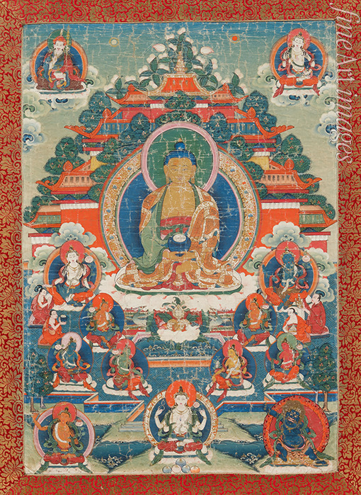 Gottheit, Buddhismus, Rituale, Tibet, Tibetisch-buddhistische Kultur, Himalaya, Hochland von Tibet, Bodhisattva, Lama, Sadhana, Meditation, Mantras, Yoga, Buddha, Thangka, Tangka, Thanka, Tanka, Amitabha, Reine Land Amitabhas, Reines Land, Amida, Sukhavati, Shadakshari