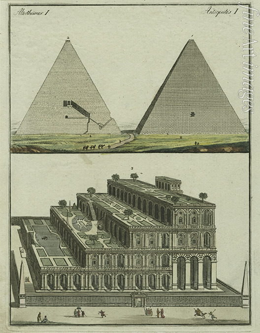 Durchschnitt und Inneres der großen Pyramide. Die schwebenden Gärten