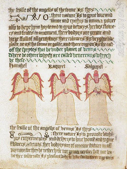 Titel:Engel von Saturn, Jupiter, Mars, Sonne und Venus. Aus The Sworn Book of Honorius (BL Royal 17 A)